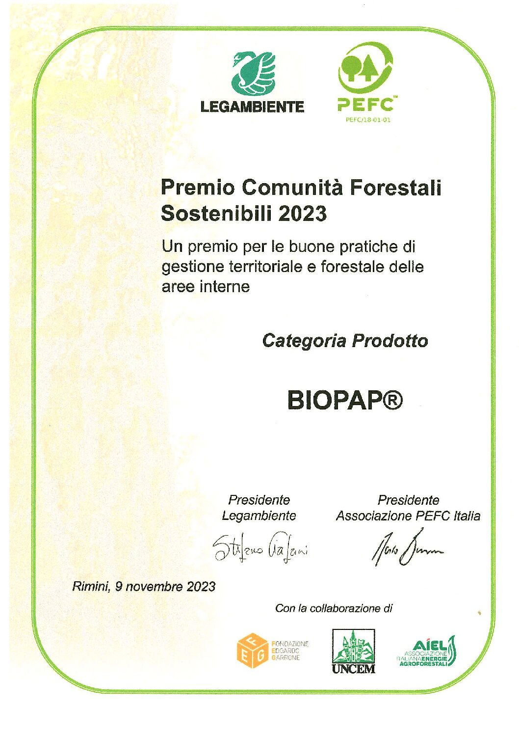 BIOPAP S.r.l. Società Benefit è stata premiata come Miglior Prodotto di Origine Forestale