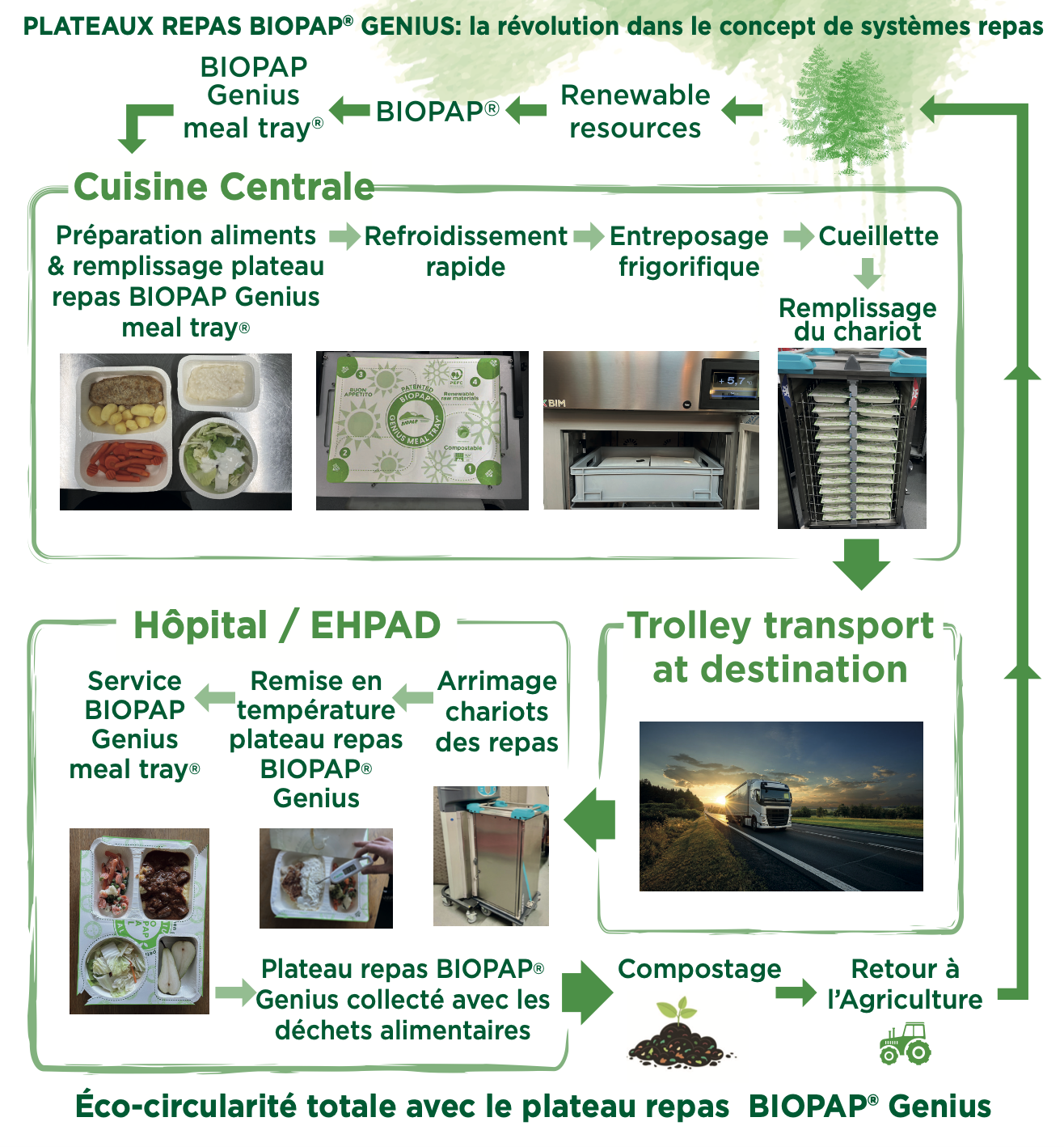 BIOPAP Genius Meal Tray®, le système révolutionnaire de distribution de repas hautement efficace, compostable et entièrement circulaire.